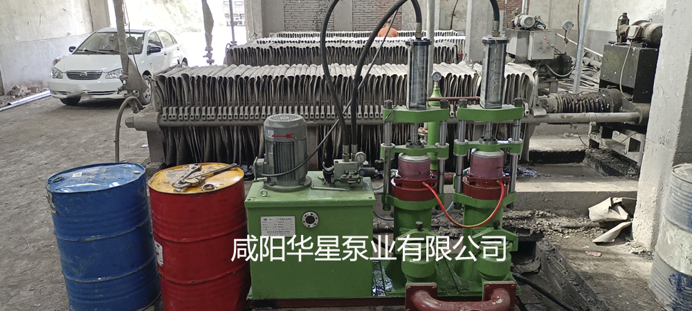 一臺華星柱塞泥漿泵給4臺壓濾機進料